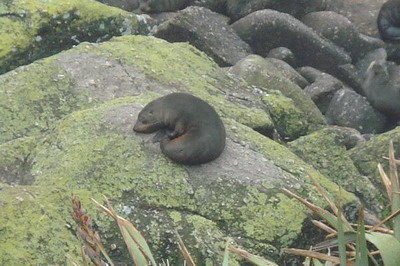 Fast am Parkplatz angelangt trafen wir einen etwas älteren Neuseeländer (schätzen ihn auf 75-80 Jahre), der uns alles Mögliche über Pinguine und Robben erzählte.