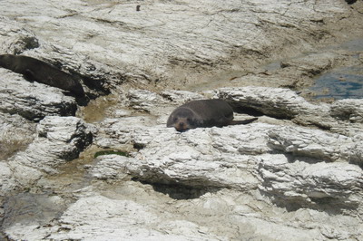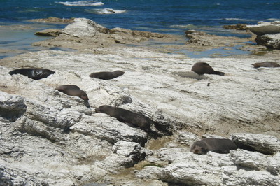 Am Tag darauf (27.12.) fuhren wir weiter nach Westport und sahen den Robben auf Cape Foulwind aus der Ferne beim Faulenzen zu. Zu unserem Glück ist zu dieser Jahreszeit eine Vielzahl von Robben an Land, da sie sich dort um ihre Jungen kümmern.