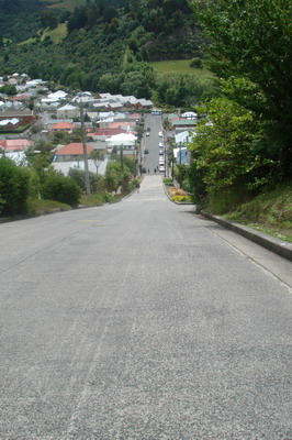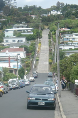 Anschließend besichtigten wir Dunedin, eine Stadt mit tollen Gebäuden und natürlich mussten wir auch zur steilsten Wohnstraße der Welt (lt. Guinnessbuch der Rekorde). Ist klar das wir unser Spuckerl da auch raufjagten – naja, so klar war’s dann auch wieder nicht, da Sarah anfangs einige Bedenken bezüglich dem „Umfallen“ hatte. (Tom meint ja immer nur: Is jo nur a Mietwagen, is jo halb so schlimm) Aber Superspucki hat’s geschafft und kam heil wieder runter, was unser Video beweist!!! Video Steilste Wohnstraße Sind aber auch zu Fuß die Strecke rauf- und runter gelaufen und i kann nur sagen: wennst da wohnst, wird’s erst richtig interessant, wennst alt bist und an Rollstuhl hast – do geht’s dann steil bergob mit dir…