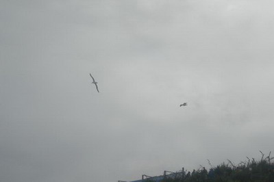 Nachdem wir unsere Wasserreserven mit frischem Quellwasser an der Brauerei gefüllt hatten (und insgeheim hofften vielleicht ein paar Prozente abzubekommen) ging’s weiter auf die „Otago Peninsula“. Da wir mit den Pinguinen in Oamaru schon so ein Glück hatten, beschlossen wir dasselbe bei dem kostenpflichtigen Albatros-Center zu versuchen und tatsächlich sahen wir nach wenigen Minuten die ersten riesigen Albatrosse (Spannweite ca. 3,5 m). Den Größenunterschied sieht man erst so richtig, wenn eine Möwe nebenbei fliegt.