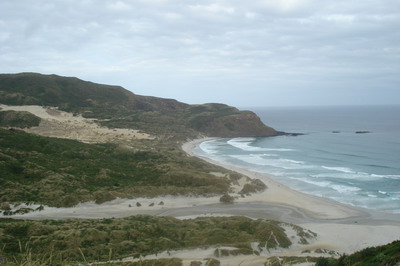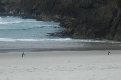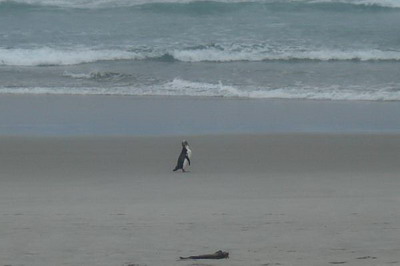 Um später wieder für gute Träume zu sorgen, gingen wir auf der Peninsula auch wieder auf Pinguinsuche. Da dort der etwas größere Gelbaugenpinguin schon früher an Land kommt, spazierten über die Sanddünen hinunter zum Strand. Nach einer halben Stunde hatten wir keine Lust mehr und machten uns auf den Rückweg, wo der Erste Pinguin einfach so unseren Weg kreuzte. Diesem folgten ein paar Meter die nächsten und in der Zwischenzeit warteten die anderen Besucher auf einem Aussichtspunkt am Ende des Strandes… 🙂