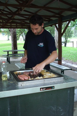 In Airlie Beach angekommen, wo wir unser Schnorcheln geplant hatten, gab’s schlechte Neuigkeiten. Der Touranbieter informierte uns dass alle geplanten Schnorcheltouren gecancelt sind, da für heute Nacht eine Cyclon-Warnung mit über 100 km/ h vorausgesagt ist. Also fiel unser Schnorchelausflug sprichwörtlich ins Wasser und wir machten uns schnellsten weiter auf den Weg Richtung Süden, da es bei derartigen Windgeschwindigkeiten sicher nicht allzu angenehm ist im Auto zu schlafen. Zum Glück kam der Cyclon dann später als erwartet und wir bekamen am nächsten Nachmittag nur mehr die heftigen Regenschauer mit. Wir nutzten diesen um einen kurzen Stopp an einer BBQ-Station zu machen und uns unter strömenden Regen etwas zum Essen zu grillen. Also diese Dinger sind schon praktisch!!!!