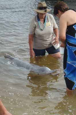 Am 5.2. waren wir in Tin Can Bay wo jeden Morgen die Delphine zum Ufer kommen um das tägliche Futter abzuholen.