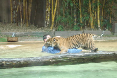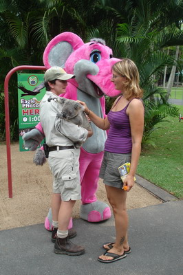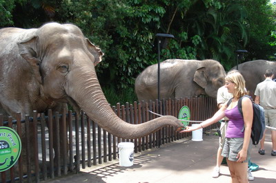 Am nächsten Tag ging’s dann weiter in den Australia Zoo. Vielen vielleicht vom verstorbenen Besitzer Steve Irwin, dem Crocodile Hunter aus dem Fernsehen bekannt. Wirklich ein genialer Zoo. Man kann hier fast alle Tiere streicheln (was Sarah ausreichend erledigte), Fotos mit ihnen machen und jede Stunde gibt’s irgendeine Show. Sei es mit Tigern, Krokodilen, Elefanten oder auch nur Ottern und man bezahlt trotzdem nicht recht viel mehr wie in unseren Zoos (keine Extrakosten für die Shows).