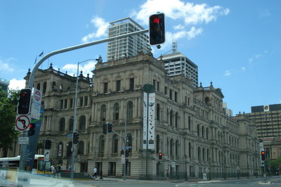 Danach ging’s wieder zurück Richtung Brisbane. Am Vorabend mussten wir, um zum Fährhafen zu gelangen, schon einmal durchfahren und konnten Brisbane bei Nacht bewundern. Bei Tags sah die Sache dann doch etwas anders aus. Hatten wir bei Nacht noch den Eindruck, Brisbane wäre eine schöne Stadt, wurden wir bei Tags eines Besseren belehrt. Rund um die schönen, alten Gebäude wurden einfach Hochhäuser gebaut und so passt das Stadtbild einfach nicht zusammen! Was uns aber doch noch sehr gefallen hat, war die künstlich angelegte Lagune (zu diesem Zeitpunkt leider zwecks Reinigung ausgelassen).