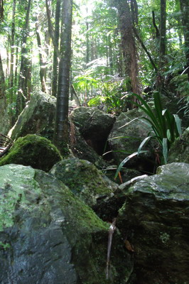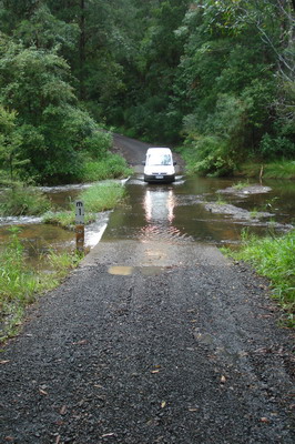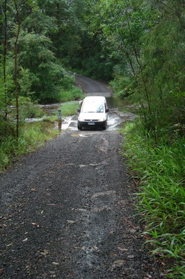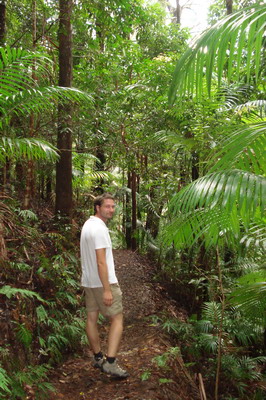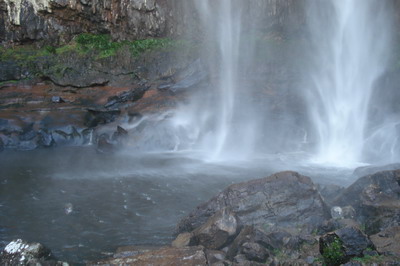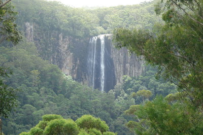 Gegen Mittag erreichten wir nach einer ziemlich rumpeligen und feuchten Anfahrt durch den „Whian Whian Nationalpark“ dem „Minyon Fall“, welcher sich dort 100 Meter in die Tiefe stürzt. Da dieser vom Lookout natürlich nur teilweise und von oben zu sehen war, gingen wir den 1-stündigen Weg durch den Regenwald zum Bassin, um ihn aus der Nähe zu sehen. Im Gegensatz zu den neuseeländischen Wasserfällen endlich mal ein richtig Großer. Leider, was wir erst nach 10-minütigen Betrachten bemerkten, wimmelte es dort unten auch von Egeln, die sich mittlerweile in alle Ritzen unserer Schuhe verkrochen hatten. Ekelhaft!!!! Aber so erfreuten sich unsere Schuhe wieder mal einer Grundreinigung.