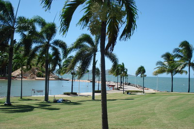 Am 31.1. sind wir in Rockhampton angekommen, der Rinderstadt von Australien. In einem Umkreis von 250 km sind 2,5 Millionen Rinder!! Dies ist am Eingang der Stadt nicht zu übersehen. (Aber warum sieht man zur Begrüßung den Arsch und nicht das Gesicht des Rindes????)
